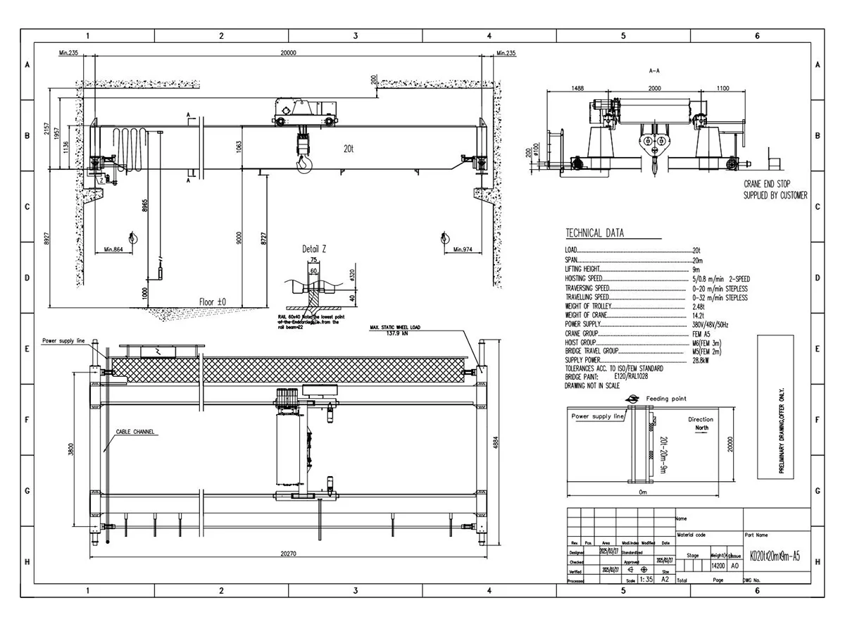 Provides comprehensive outputs including major component specifications, wheel load data, motor parameters, preliminary drawings, offer sheets, main girder data, and detailed drawings.