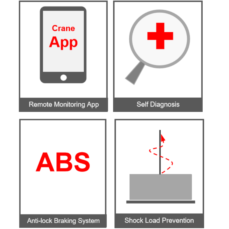 The crane monitors the load size and automatically calculates the hoisting acceleration required to eliminate shock, gradually applying the load until the heavy object is lifted without impact.